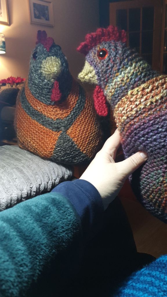 • Yes I thought my spinning looked very chicken like. I wasn’t certain if she would be allowed one in the hospital and meant to ask whilst we were there. I’m going to make a third once I’ve raided my handspun drawer.