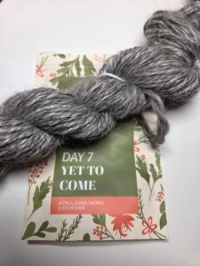 During this week’s social spinning I spun day 7 of my advent from World of Wool. (I have 8 days left to spin.) This blend included some mohair and my goodness there’s fine fluff everywhere!!! Even my weaving has ended up getting some trapped in it.