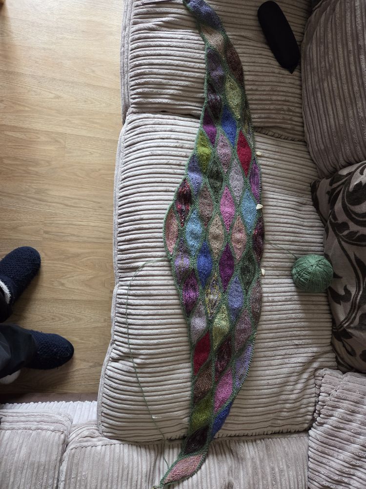 3. That shawl is gorgeous! I can see why you’ve wanted to focus on it. That’s one I would probably make with black as the outline color, as I love the look of stained glass. 😁