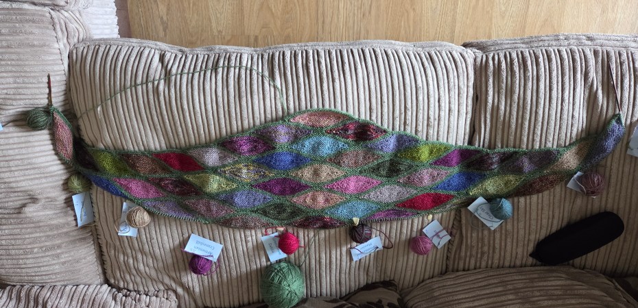 I have two more rows to do, assuming I’m doing ok for yarn as I’ve excluded some colours.