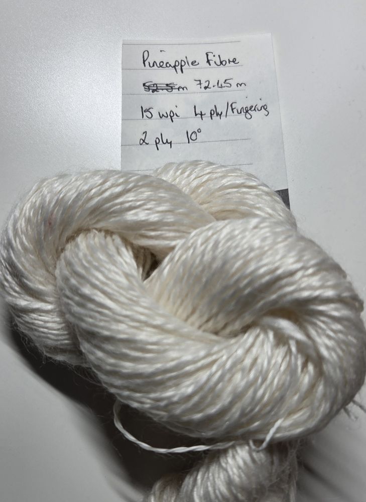 I was at work when we had one of the Guild January challenge zoom calls but made the one on Thursday night when I finished the pineapple fibre sample, which was not an enjoyable spin. It kept getting up my nose and a little like mohair getting everywhere. I received the fibre in 2018 in one of the World of Wool Fibre Club boxes…in case anyone was wondering why I bought it.