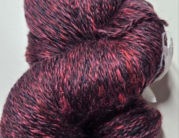 I also finished spinning the Bluefaced Leicester and Mulberry Silk. The blend was from World of Wool called Jellyfish Sprite. It is a little over 150g of sport weight. I need to set it and then can use it for a weaving project. It was black BFL and red silk.