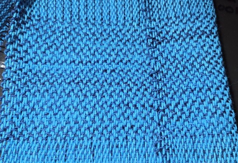 I should have added a hanging selvedge thread on each side because this would have neatened the edge where some of the patterns weren’t capturing the outside thread.