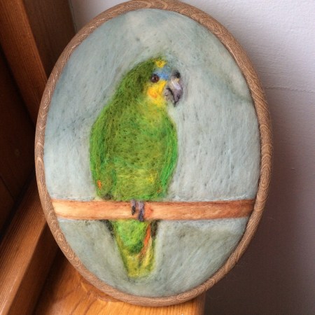 Needle felted Orange Winged Amazon Parrot